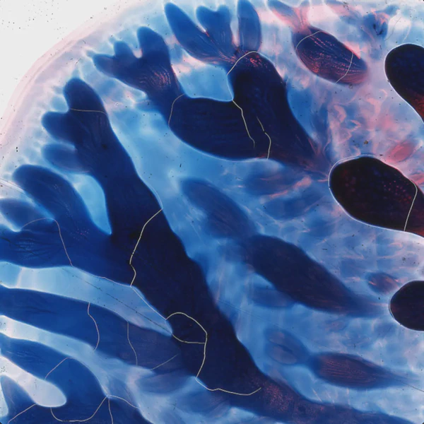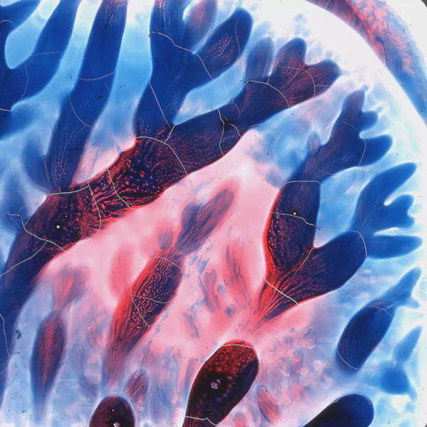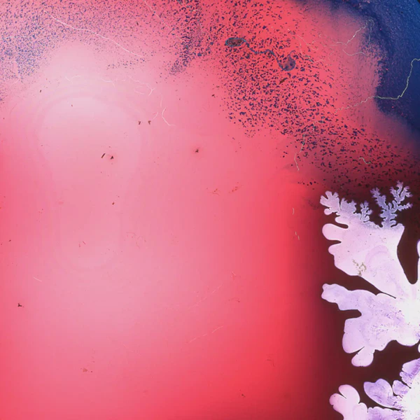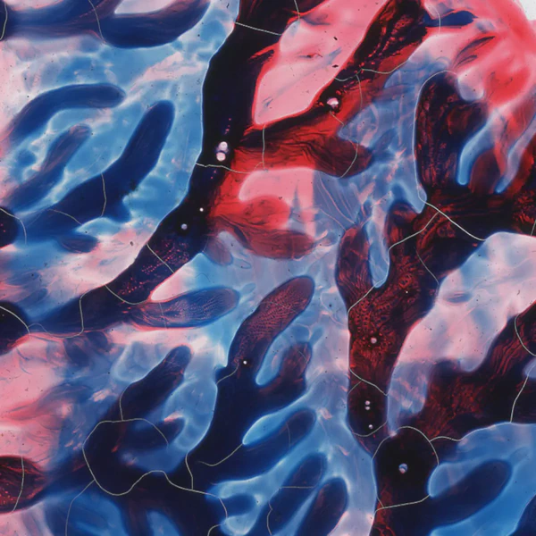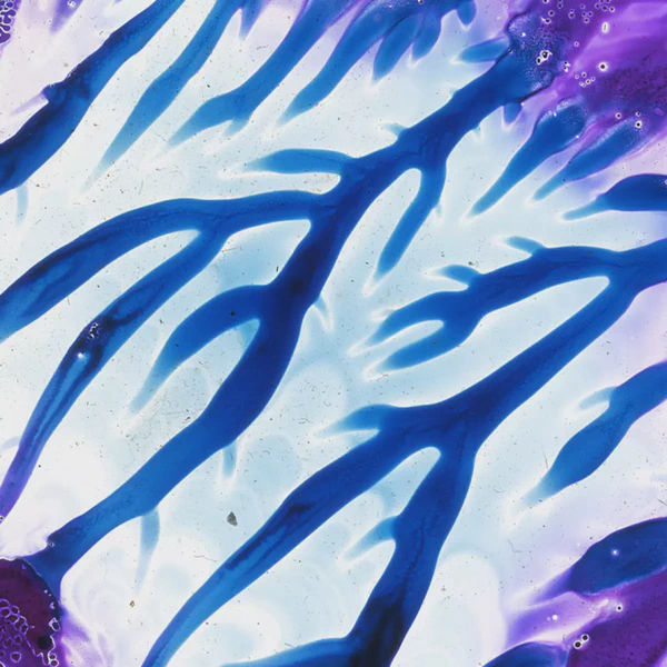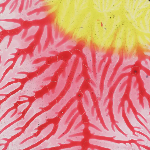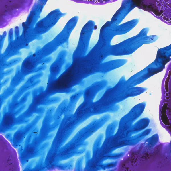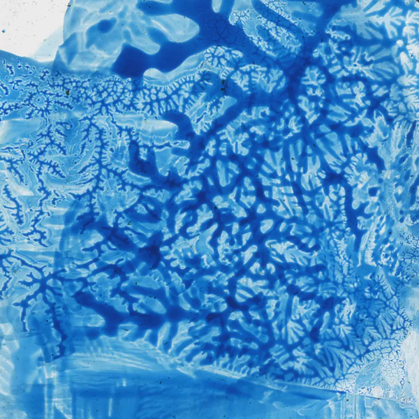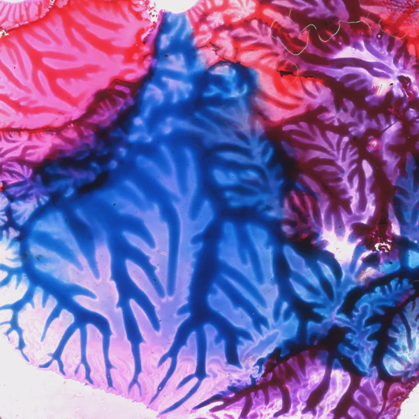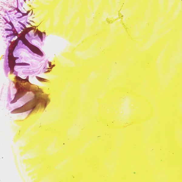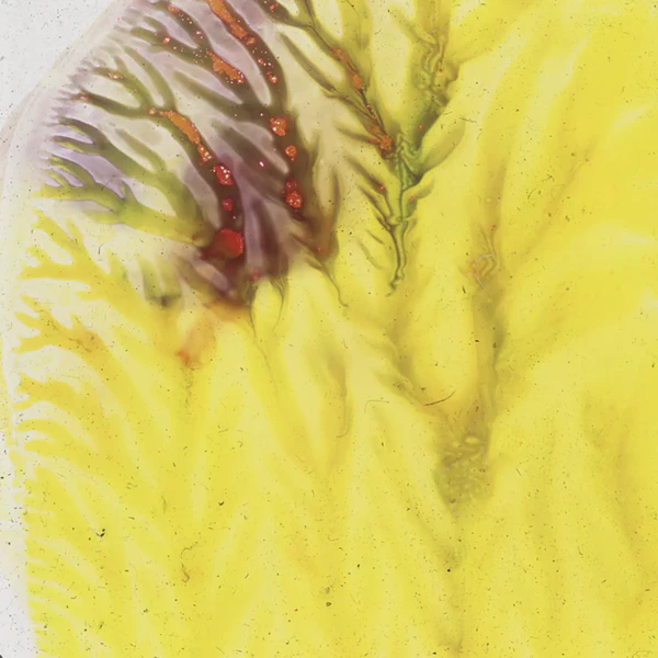 I used transparent colored lacquers and discovered that if I abstractly painted one side of the glass slide, I could then press the unpainted glass against the painted one and had a painted mirror image of the first one. Very cool.