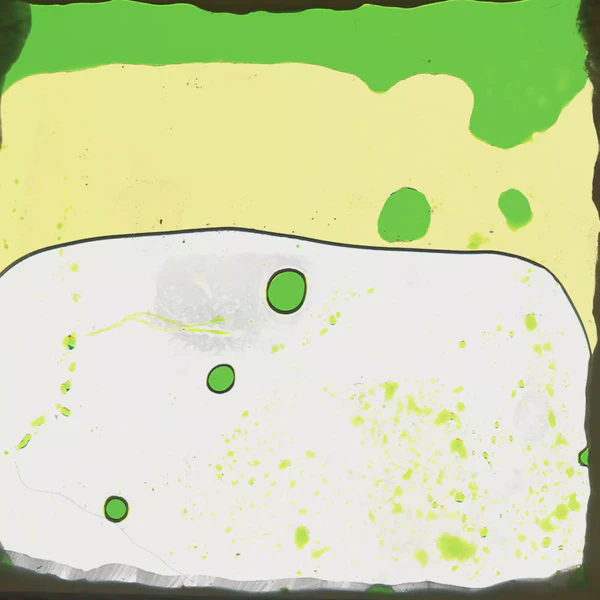 It took a bit of figuring and experimenting to figure out how to actually make a "hollow" 35 mm slide, but the idea I came up with worked ! I worked out that a slide the thickness of three pieces of Kodak carousel slide glass would fit a Kodak Carousel 80 count slide tray and into the projector. I created my hollow glass slide by taking three pieces of slide glass and making a sandwich of them. I then proceeded to silicone together three sides of the "sandwich". After slipping the centerpiece of slide glass out of the "sandwich" I then siliconed the third side shut with a very small opening through which I was able to insert liquids into the slide with a hypodermic needle. I used mineral oil dyed with aniline dyes, to this I added water and glycerin with water based food coloring. When I was satisfied with what I had made I sealed the last opening.